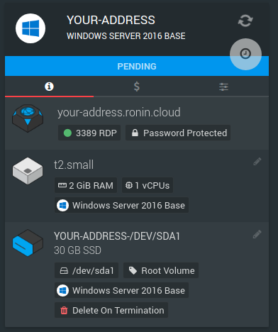 As shown in the image above, this machine is showing as PENDING. Windows can sometimes take a while to start after creation. If you can't connect straight away, wait until the status shows RUNNING and try again.