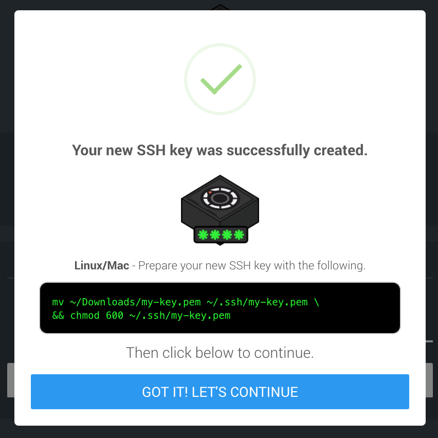 For Linux based machines, you will need to create a secure key to connect to your machine via SSH.