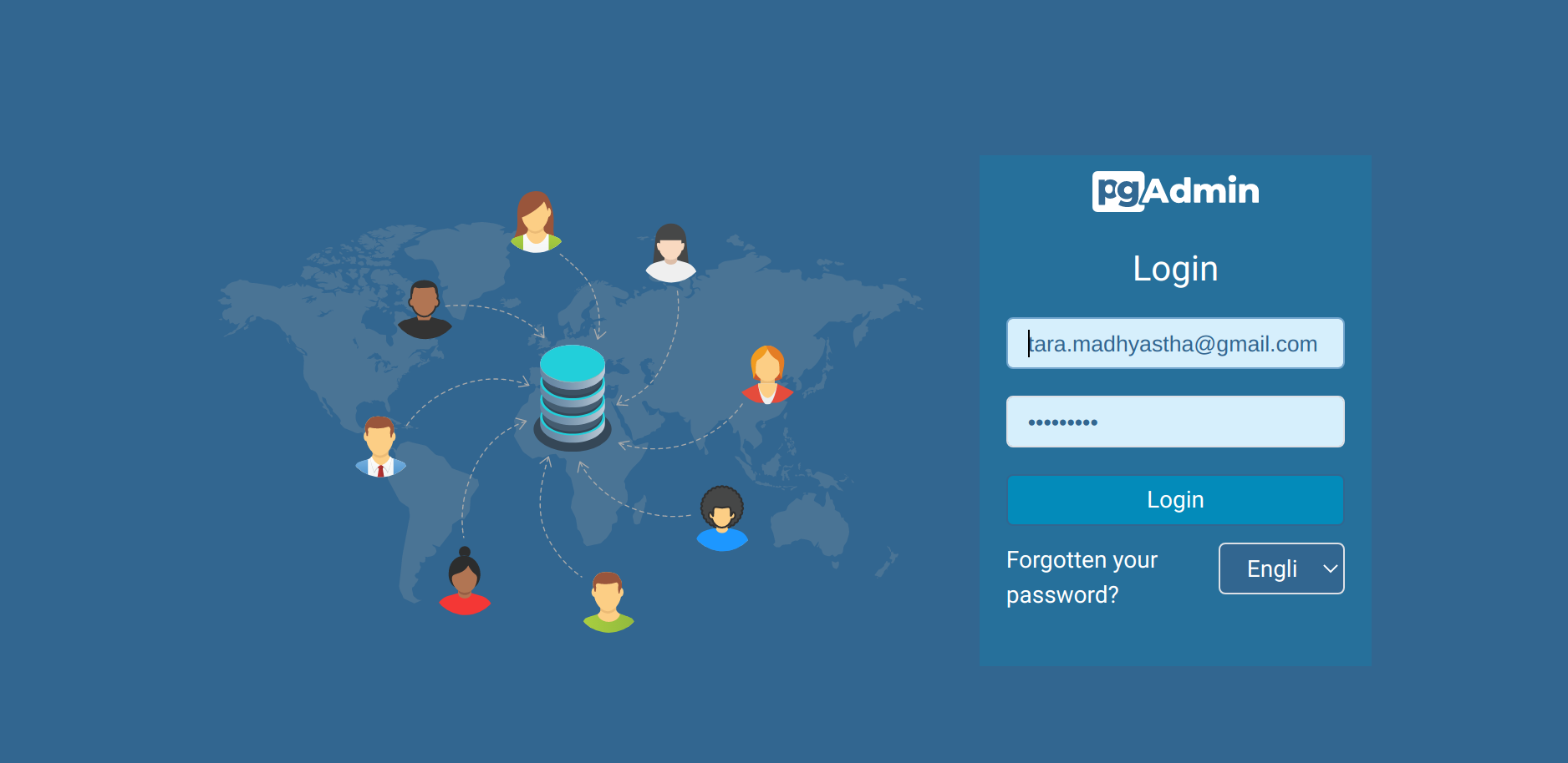 This will bring up the pgAdmin login screen as below. To log in, enter the email and the password you provided upon configuration.