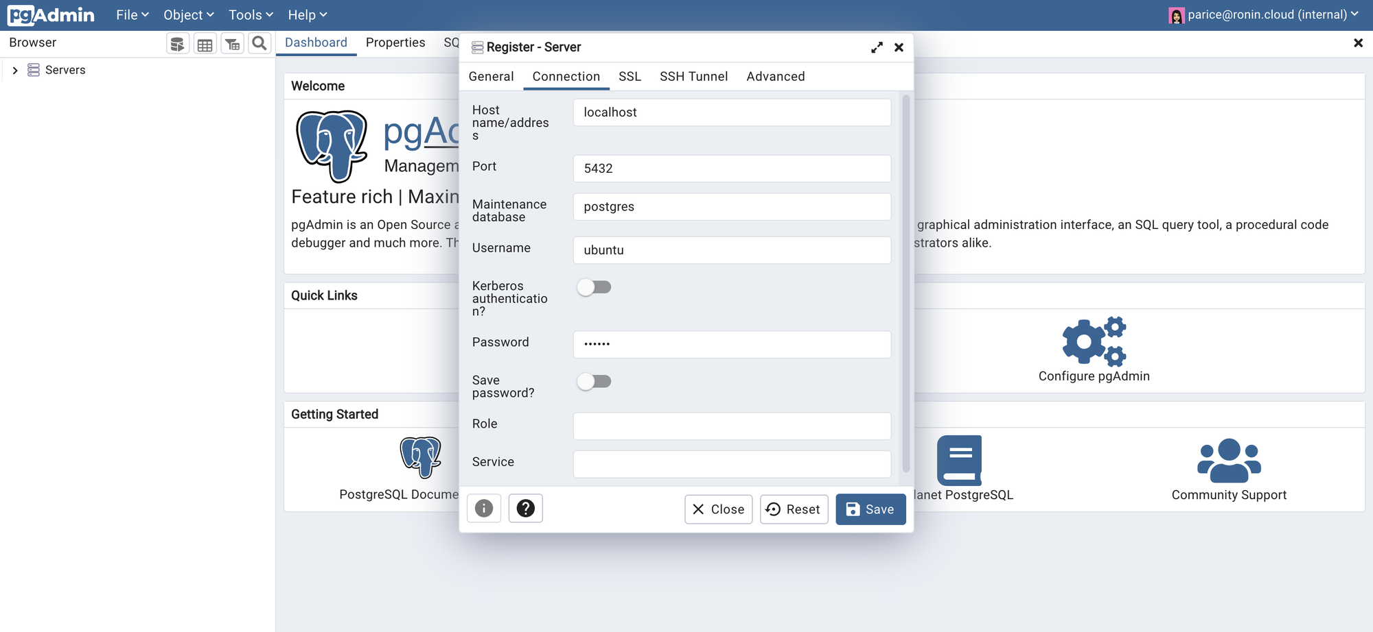 Use RONIN LINK to securely tunnel to pgAdmin from your local computer (your laptop or desktop).