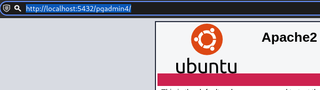 This will open a tab on your browser with a default screen for Apache. This indicates that the Apache browser is working. Now to navigate to the pgAdmin console, enter /pgadmin4 after the path shown in the browser window.