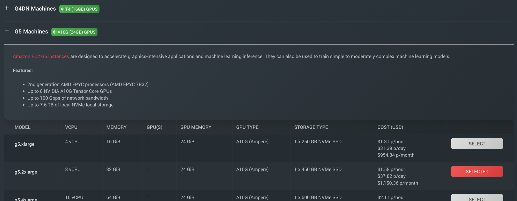 - One-Click Environments: We deploy AWS Deep Learning images pre-configured with CUDA, PyTorch, or TensorFlow.