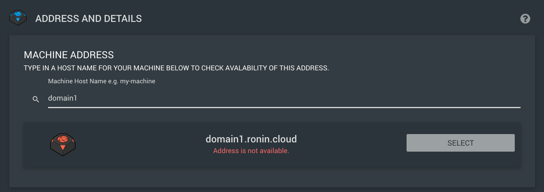 /ronin-protected-domains/2 and continue creating parameters under the /ronin-protected-domains/ list as needed e.g. /ronin-protected-domains/3, /ronin-protected-domains/4 etc. You can also use these lists to separate out domains into categories if desired. The best way to test if your new parameter has worked is to login to RONIN, select a project, navigate to the "New Machine" screen, select Step 2. "Address" and type in one of the values you put in your protected domains list. If the parameter is working correctly, you will see an error message which states the address is not available for use in RONIN: