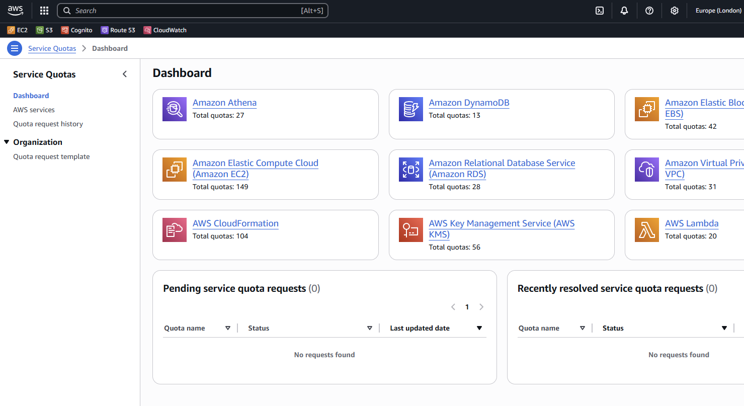 This is what the Service Quotas console looks like.