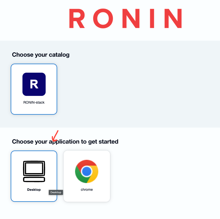 - Select the RONIN-stack catalog.