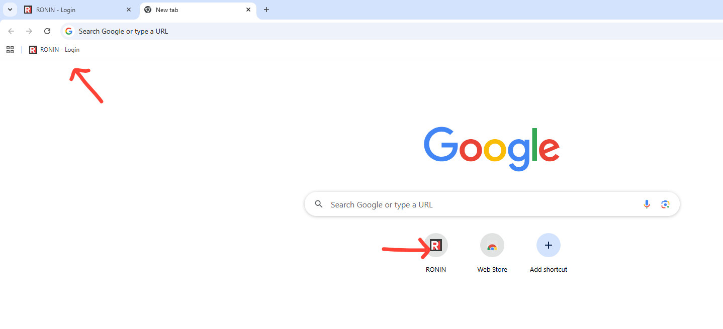 - You don't need to hunt for the URL. On the new tab page, simply click the RONIN bookmark/shortcut.