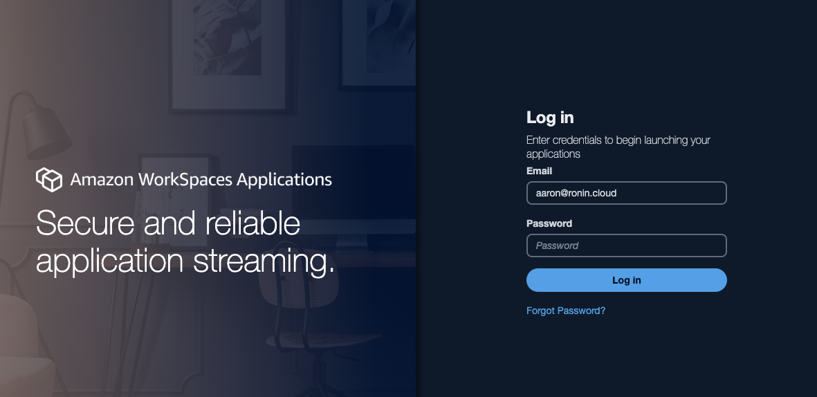 When the user clicks the link, they will be taken to the Amazon WorkSpaces Applications login portal.