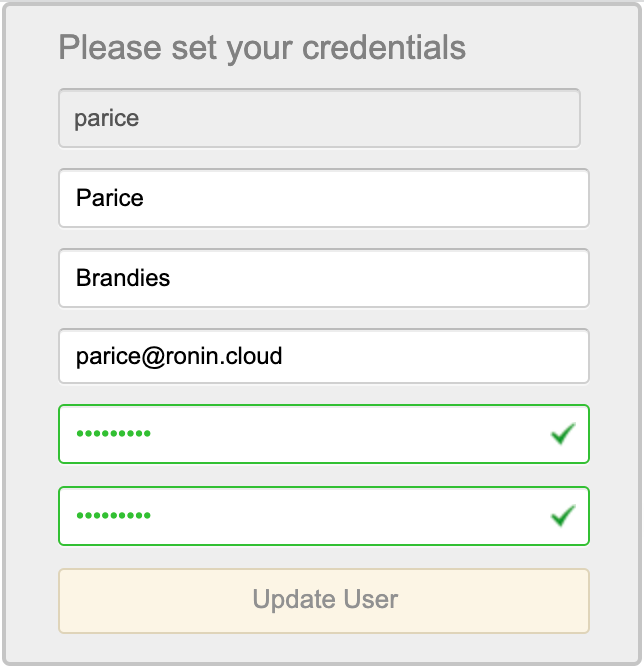 When your RONIN Administrator has created a WorkSpace for you, you will receive an email that includes some information you will need to set up and connect to your AWS WorkSpace. The first step is to click the link provided in the email which will take you to a webpage where you can set a password for your WorkSpace. Ensure the password you create is secure, and ensure you store your username and password somewhere safe - you will need these each time you log in to your WorkSpace.