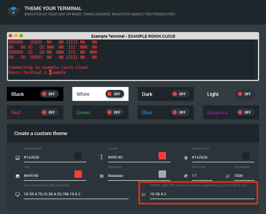 Note: You will likely need to go into the RONIN LINK settings (which can be found in the top right corner of the main RONIN LINK window) and edit the RONIN LINK DNS Servers to be able to connect to your machines. Your RONIN Administrator should be able to tell you what DNS Server should be used.