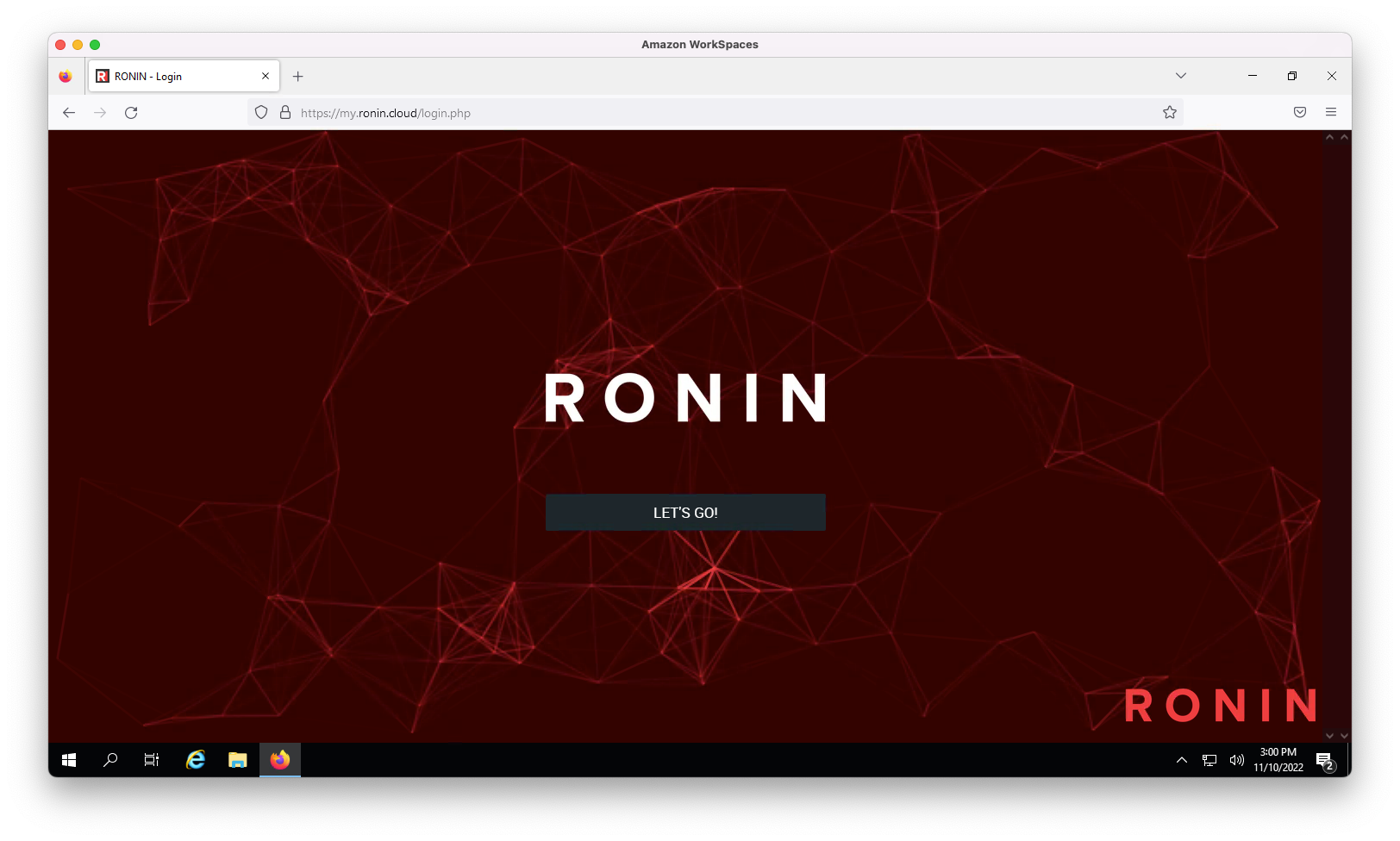 RONIN Isolate has been designed to only be able to be accessed via a secure enclave of machines. By default, these machines are set up as "WorkSpaces" in AWS. To connect to RONIN Isolate, an Administrator will need to create a WorkSpace for you and you will need to login to this WorkSpace each time you wish to connect to RONIN Isolate. This blog post will describe the process of connecting to your WorkSpace for the first time.
