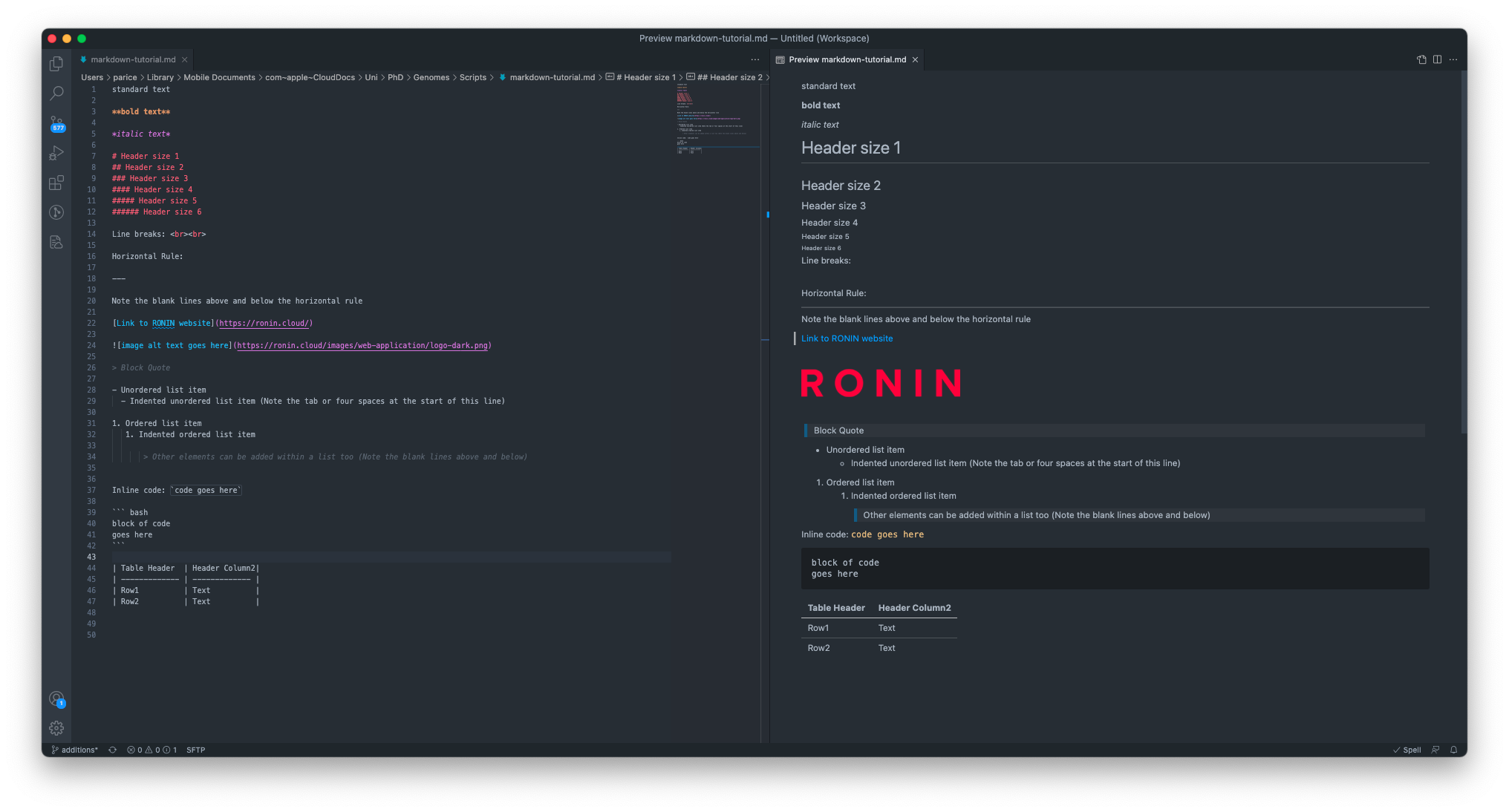 Now you can make sure your Markdown code is formatted exactly the way you like it before you upload it to Github or convert it to a pdf to share with others. Speaking of which, VS Code also has some great extensions for working with Markdown that we highly recommend.