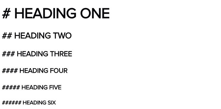 Hash symbols are used to create headings — the more hashes that are used, the further down the heading hierarchy you go. For example, a single hash # is used for the first heading level, two hashes are used for the second heading level ... and so on up to the 6th heading level like so: