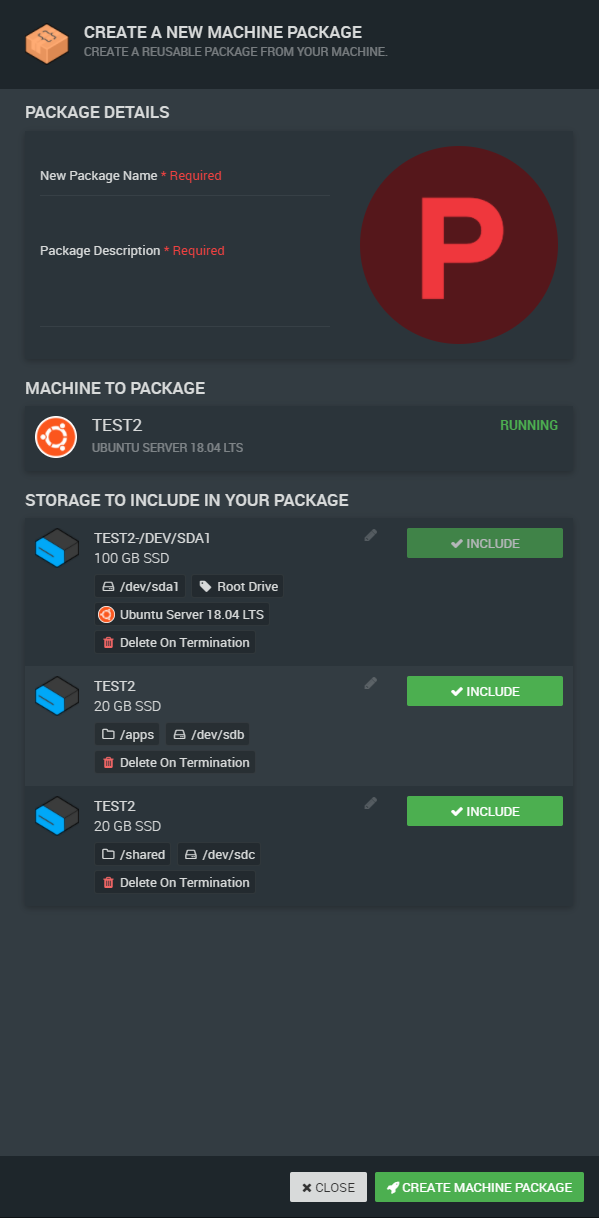 Step 2 - Enter the desired Package Name and Description and click CREATE MACHINE PACKAGE.