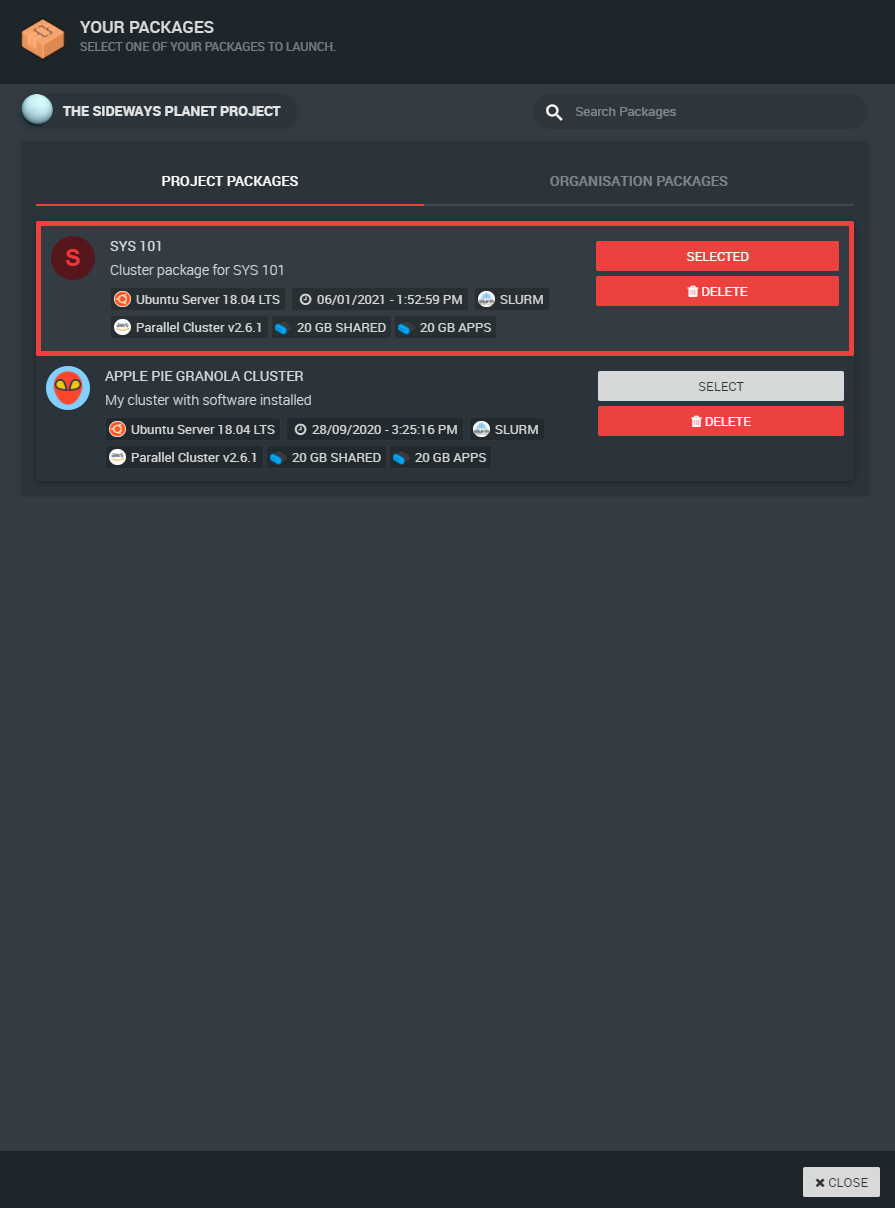 Packages will have an Operating System, a Root Volume (for the operating system) and any user defined volumes, such as datasets, files, or pretty much anything you want. It will also have any software you've installed on the head node and make it available on the child nodes as well once launched from the package.