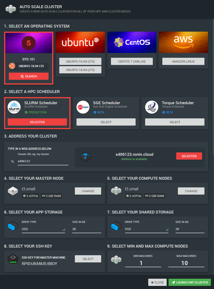 Step 6 - Continue to populate the Auto Scale Cluster form and click LAUNCH MY CLUSTER