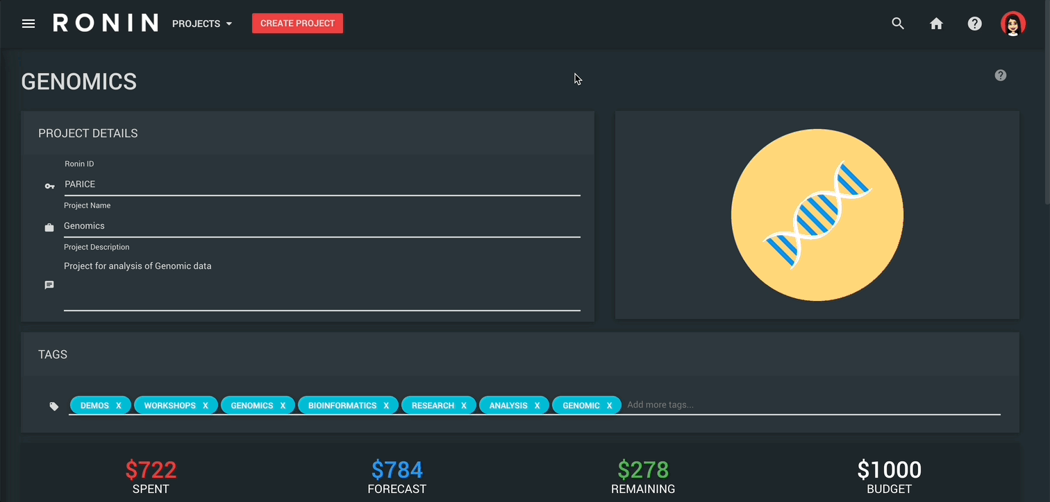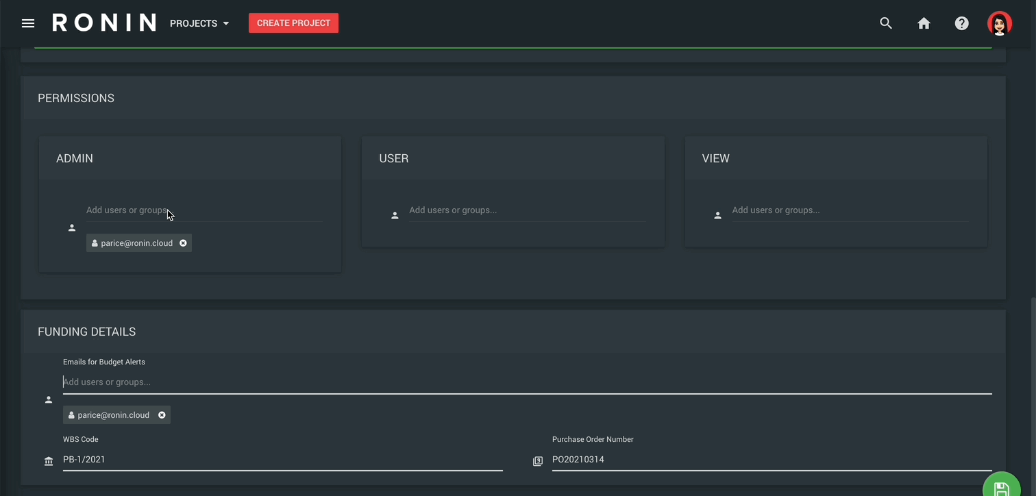 - Project admins will automatically be added to receive budgeting alerts when creating a project in RONIN