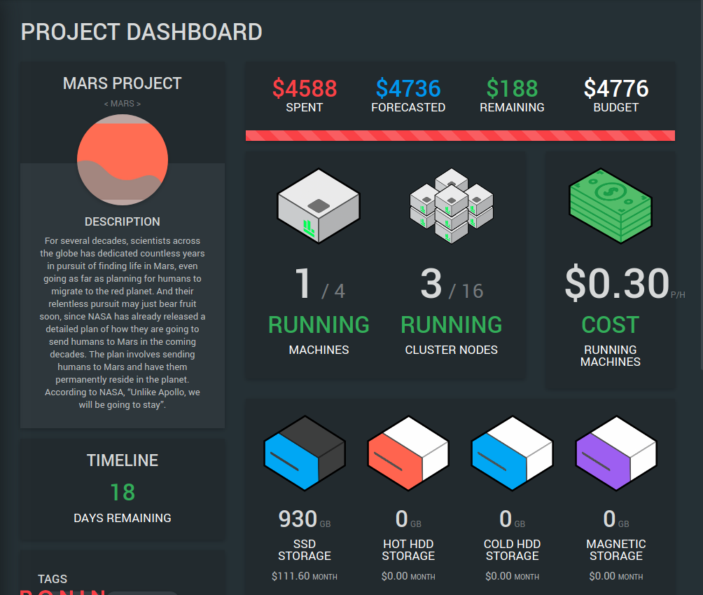 - Dashboard shows HPC and Machine details