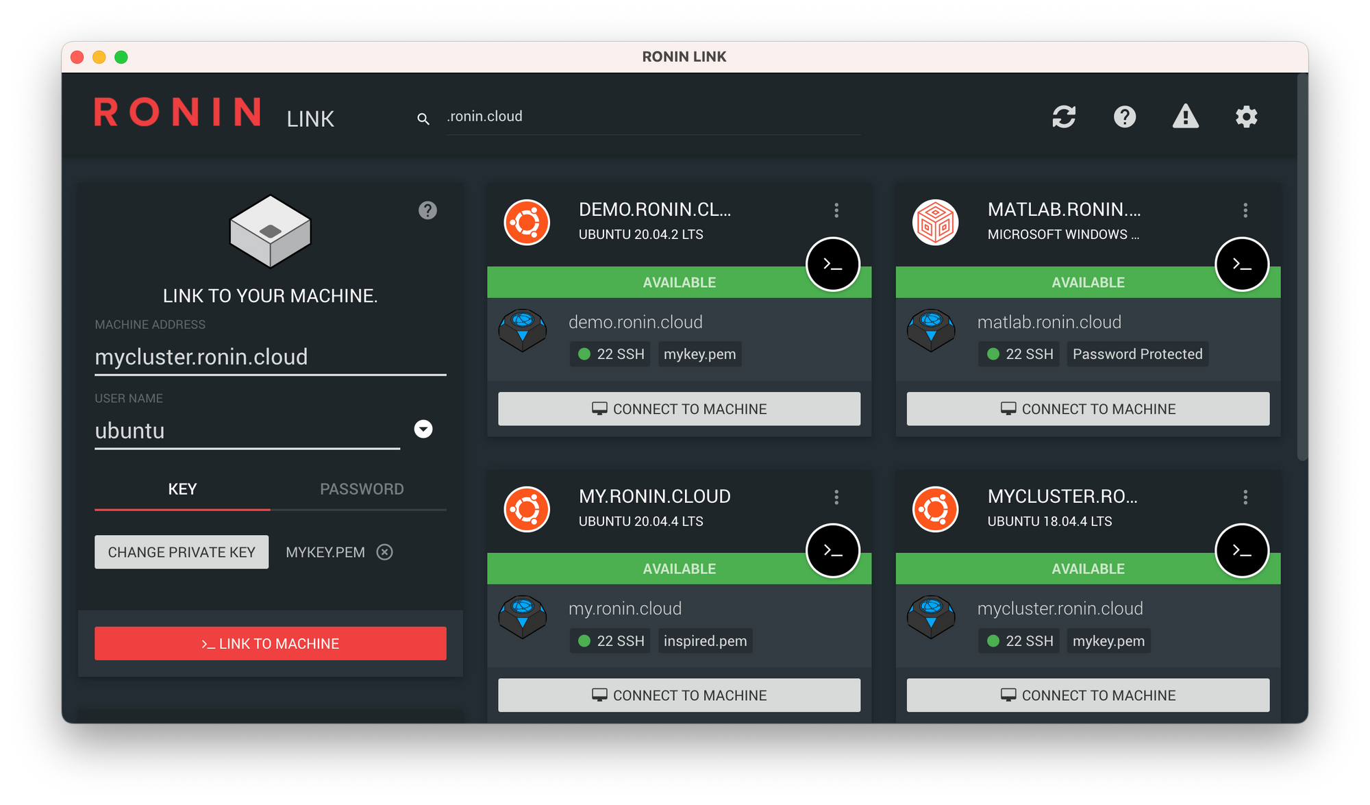 - A machine search option has been added to RONIN LINK