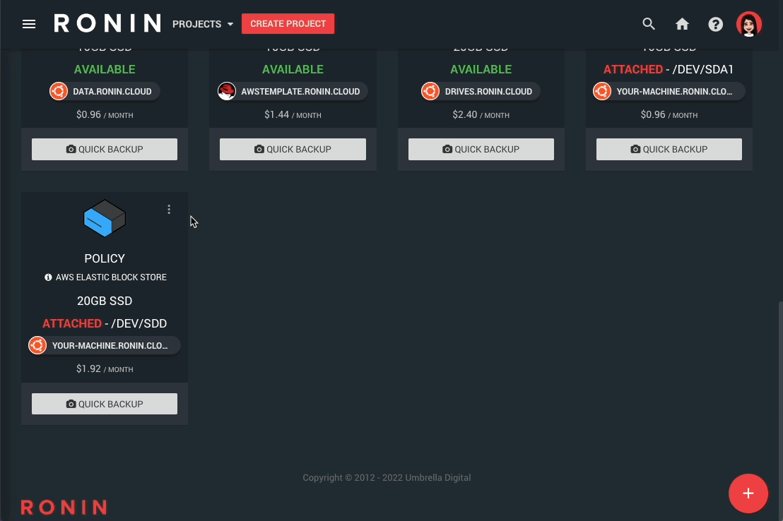 We think it's a good idea to have a summary of all your project's storage volumes accessible with quick actions and the ability to create blank storage volumes, and volumes from snapshots on one easy to access page.