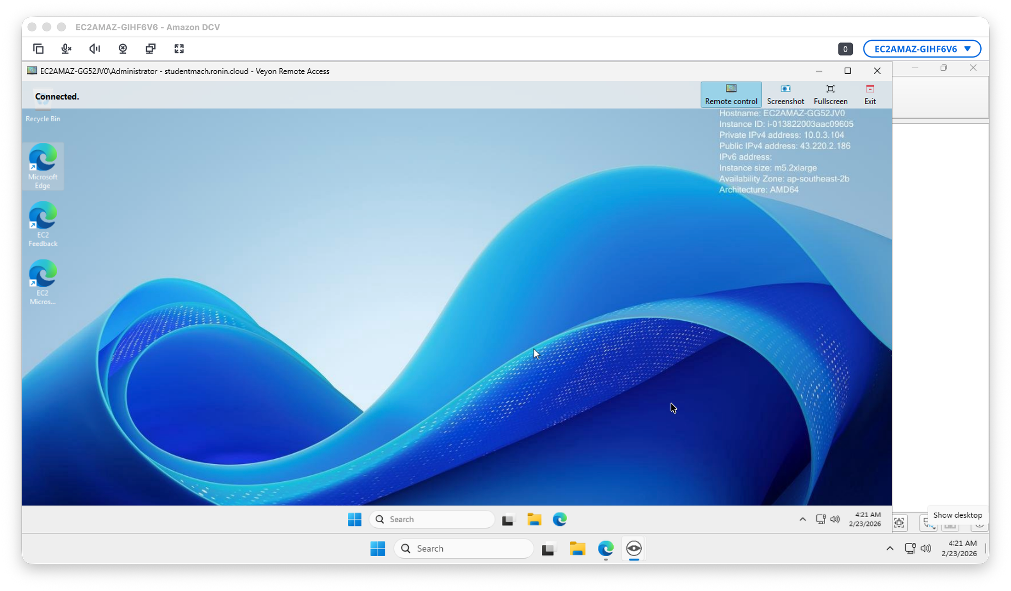 - A Windows Machine with DCV installed (via RONIN LINK) that will act as the "Student" machine