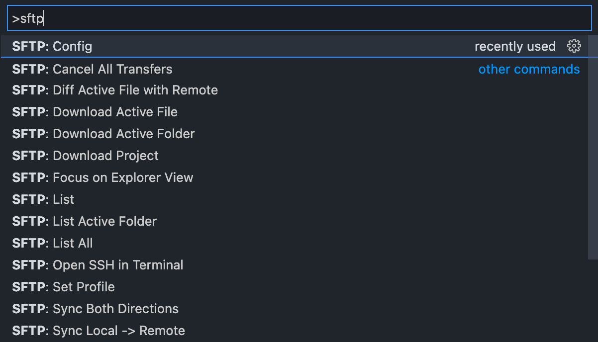 Note: Typing "SFTP:" into your command palette will show you all of the SFTP options available.