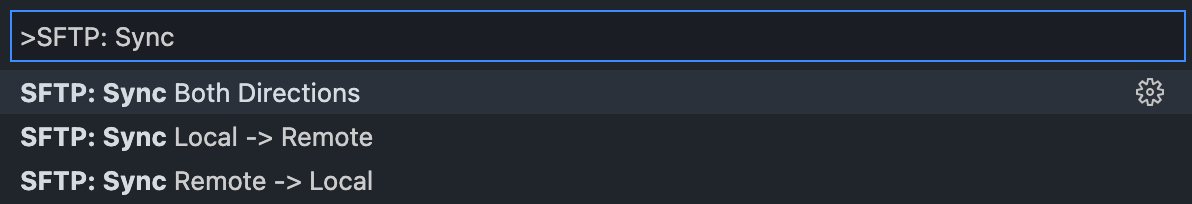 Alternatively, to sync the whole folder, open the command palette and type "SFTP: Sync". You can then choose to sync the folder in both directions or only push changes to, or pull changes from, your remote virtual machine:
